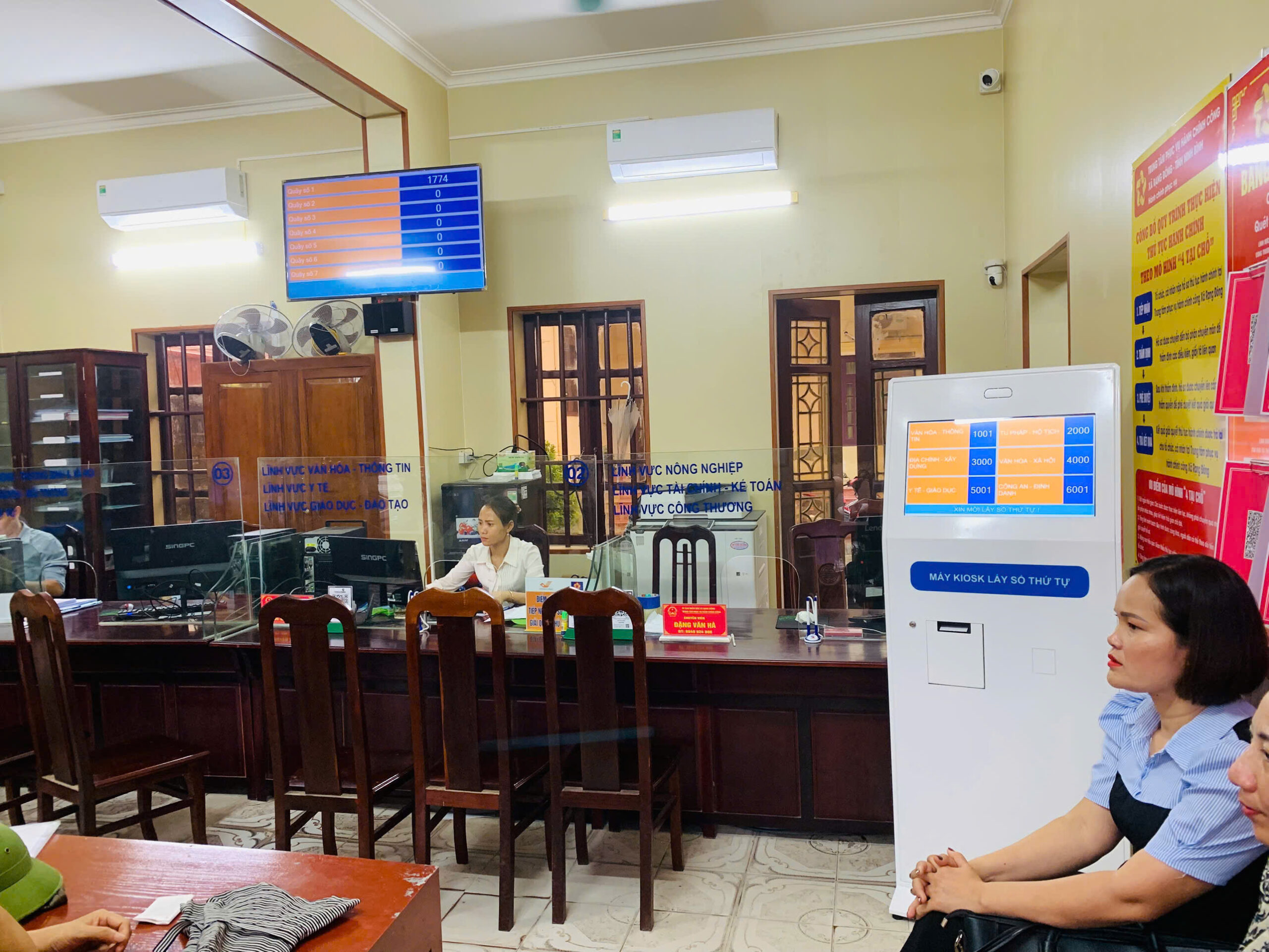 | Kiosk lấy số cảm ứng hoặc nút bấm | Người dân hoặc khách hàng lấy số thứ tự tự động |