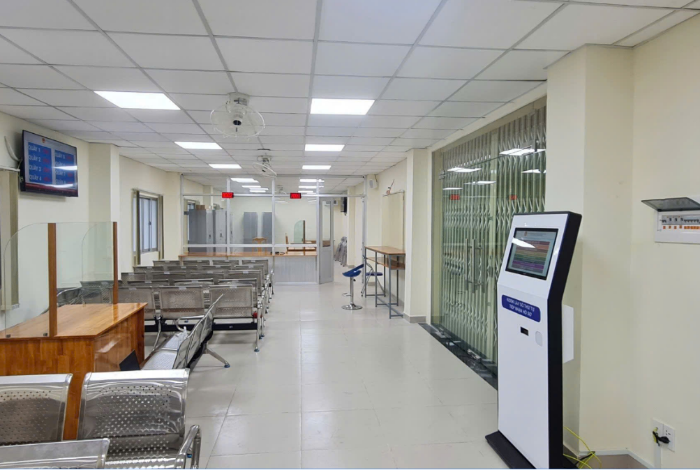 - Bệnh nhân lấy số tại kiosk hoặc quầy lễ tân.