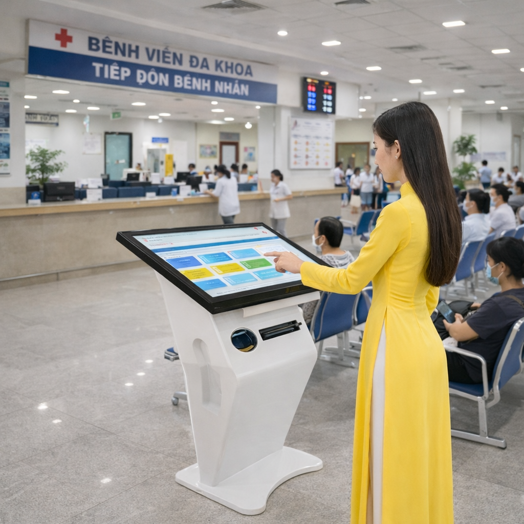 kiosk chân quỳ 24 inch tự phục vụ
